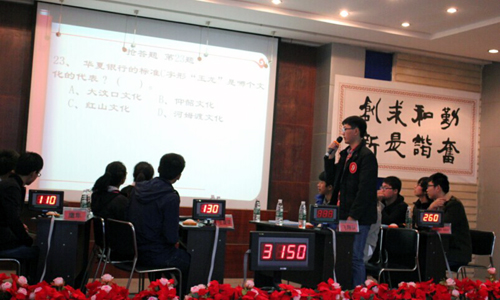经过两轮院级复赛的激烈比拼,最终四支队伍闯进决赛,展开最后的巅峰对决。总决赛共分4个环节,分别为:“先声夺人”必答题、“眼疾手快”抢答题、“舍我其谁”风险题、“峰回路转”附加题。开赛后,选手们在答题赛场上争相竞逐,营造着激烈紧张的氛围。在必答题中,选手们沉重冷静,尽显风采;抢答题中,他们毫不示弱,争相抢答;风险题中,他们配合默契,思路清晰。