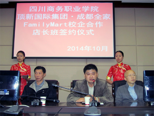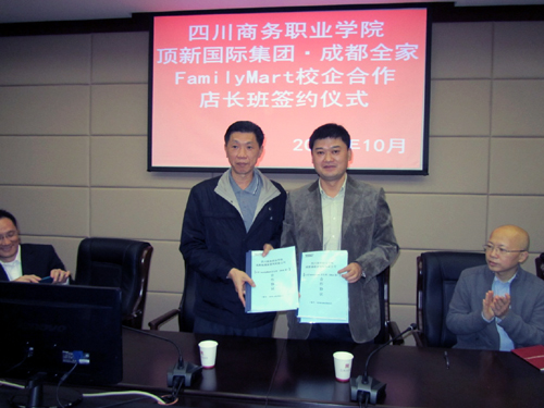 10月31上午,学院与成都福满家便利有限公司校企深度合作签字仪式在学院和盛校区二楼会议室举行,学院副院长向宏志同志与公司李健鹏总监签定了《万象城体育awcsport与成都福满家便利有限公司< 全家familymart店长班(2013级)>校企合作协议》、《万象城体育awcsport与成都福满家便利有限公司< 全家familymart店长班(2014级)>校企合作协议》。