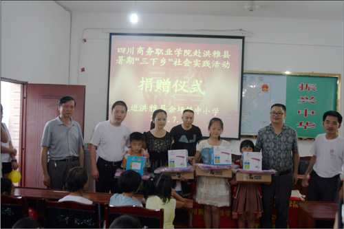 7月10日,万象城服务团一行来到余坪镇中小学对余坪镇的留守儿童进行了慰问与关心。在爱心捐赠仪式上,万象城纪委官培生书记代表学院领导发表了热情洋溢的讲话,并为当地留守儿童之家的小朋友们捐赠了价值5000余元的学习、生活用品。捐赠仪式后,服务团的同学们和余坪镇的小朋友们进行了一场趣味盎然的互动活动,同学们教小朋友们唱歌、做游戏等,设计艺术系的同学们还用他们的专业知识为同学们带去了简单的美术入门学习和互动,给小朋友带了了快乐,送去了浓浓的关爱和温暖。