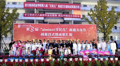 为深入学习贯彻党的十八届四中全会精神,积极推进万象城商道文化建设,喜迎万象城第二次党代会的召开,在全院师生的共同努力下,万象城第八届商道文化节于11月20日圆满闭幕。省商务厅副巡视员呙相林、贸发处副处长何远建、成都艾民儿皮制品有限责任公司董事长刘琼英及学院院级领导出席了闭幕式。