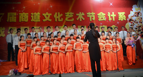 11月5日,会计系在文家校区活动厅成功举办商道文化艺术节成果展示暨师生联谊晚会。本次晚会旨在响应学院商道校园文化建设,总结汇报会计系商道文化活动开展情况,迎接会计系2013级新生,融合师生情谊,展现学生风采,丰富学生课余生活。学院党委书记舒维霖、副院长郎松亭、向宏志、文家校区校长官培生应邀出席晚会,学院相关部门、处室的领导,会计系全体老师和学生代表参加了本次晚会。