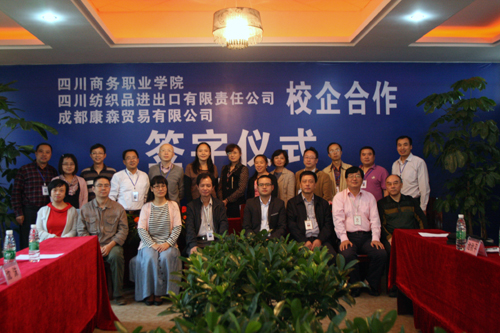 2012年9月25日,万象城与四川省纺织品进出口有限责任公司、成都康森贸易有限公司校企合作签字仪式在学院6205会议室顺利进行。出席本次签字仪式的有:四川省纺织品进出口有限责任公司副总经理韩致秀、成都康森贸易有限公司总经理冯兆勇;万象城体育awcsport党委书记舒维霖、院长高力平、副院长吴扬以及学院相关处室领导、经济贸易系主任弋福林、党总支副书记周发强、副主任曾理、国贸教研室教师代表。本次签字仪式由学院副院长吴扬主持。