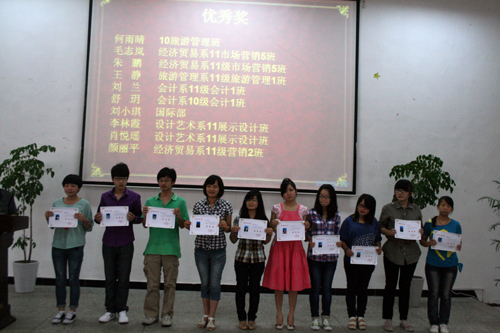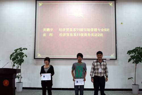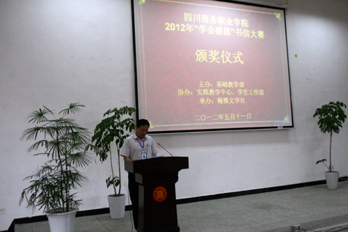 主持基础教学部工作的王伟副主任首先总结大赛组织情况。他指出,根据国家语委和省语委关于举办“世纪金榜杯”全国校园文化系列活动之书信大赛的要求,本次大赛由学院基础教学部主办,实践教学中心、学生工作部协办,学院翰雅文学社承办。竞赛时间从2012年3月28日至4月30日。分预赛和决赛两个阶段。通过向所有寝室散发传单、内外网站、电子显示屏、展板、邮箱等方式开展宣传动员,宣传范围百分之百覆盖全院。全院同学积极报名参赛,初赛作品收到稿件1500余份,并由基础部语文教研室和翰雅文学社负责审稿和筛选,评选出40名优秀选手参加决赛。所有入围作品在基础部网站公示,同时由基础部组织审定获奖稿件。经过评委反复斟酌,评选出一等奖2名、二等奖3名、三等奖8名、优秀奖10名。获奖名单和证书通过学院外网、基础教学部网站以及展板等形式予以公示,今天举行隆重的颁奖仪式进行表彰。所有入围作品已由学院基础教学部统一上报“世纪金榜杯”全国校园文化系列活动之书信大赛组委会参加全国总决赛。