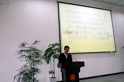 仪式上,向宏志副院长代表学院党政致辞。他强调,大赛旨在贯彻落实十七大提出的弘扬中华文化,建设中华民族共有精神家园的战略任务,加强中华优秀文化传统和革命传统教育,引导学生换位思考,学会感恩。本次大赛中,经过基础部和学生系统的广泛动员和周密组织,同学们参与积极性很高,作品质量较好,涌现了一大批格式标准、语言规范、情感真挚、文笔流畅的作品。尤其是同学们借助书信这一形式,学会感恩,懂得感恩,传递感恩,真正做到在行动中感悟,在感悟中成长,让感恩与生命一路前行。同时,竞赛活动也进一步强化了规范使用语言文字的意识,丰富了学院校园文化建设内容。