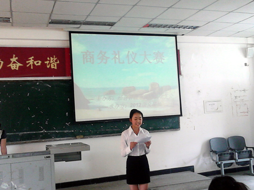5月20日中午1:00,由学院经营管理系主办,12级文秘班承办的“你的礼仪,价值百万”商务礼仪大赛在2301教室拉开帷幕。