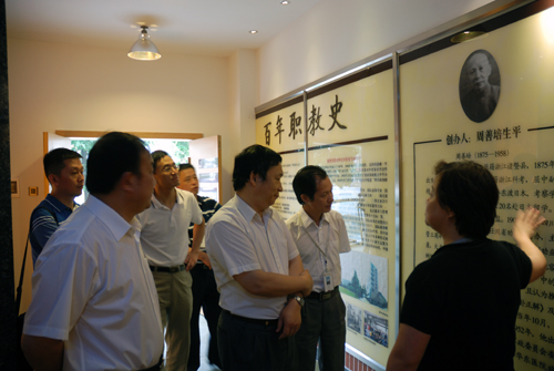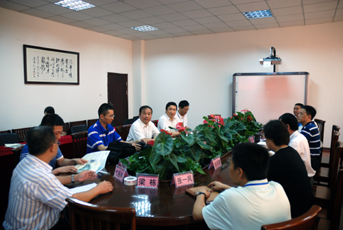 学院舒维霖书记、高力平院长、许丹雅副院长、官培生纪委书记等领导向考察团介绍了学院基本情况和申报“药品流通行业人才培训基地”的准备情况。温巡视员等考察团领导对学院的整体工作和本次申报工作给予了很高的评价。