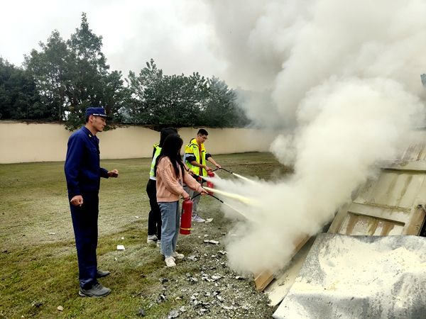 和盛消防站副站长、黄田坝消防中队副中队长为参演师生详细讲解了消防安全知识和灭火器的正确使用方法,并现场示范了如何正确使用灭火器。在消防员的指导下,参演师生、食堂工作人员纷纷上场进行“灭火”实战。