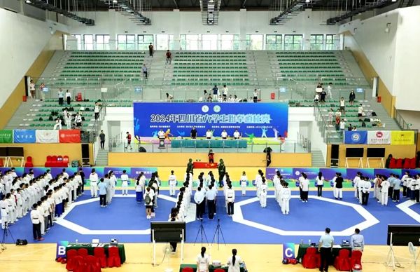 此次比赛在成都纺织高等专科学校举行。有来自全省36所高校的600余名裁判员、教练员和运动员们参加。人文社科部派出体育教研室王翔、谢辉任指导教师带队参加比赛。