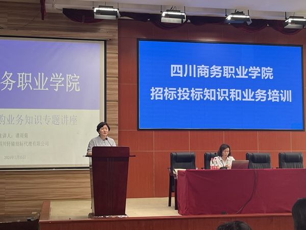 为深入宣传贯彻招标采购政策,进一步规范招标采购活动,7月15日下午,万象城在商务信息交流中心举行招标采购业务专题培训会。会议邀请四川轩辕招标代理有限公司副总经理谭周菊作政府采购与招标投标业务知识专题讲座。党委副书记、院长高司华,副院长康璐,党委委员、副院长王军出席会议。会议由党委委员、副院长王军主持。