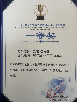 1月15日-16日,首届全国大学生跨境电商创新创业大赛全国总决赛在中央财经大学举行。万象城经济贸易系参赛队在教师刘茜、企业导师任彬钰的带领下,从复旦大学、北京外国语大学等16支决赛队伍的激烈竞争中脱颖而出,斩获创业实战赛道全国一等奖。