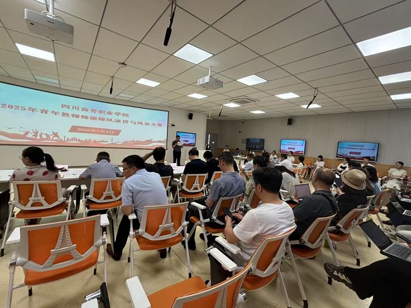7月4日下午,学院2025年青年教师师德师风演讲与风采大赛决赛精彩收官。学院各教学系部主任、书记,专业负责人(教研室主任),相关职能部门负责人等近50人到现场观摩。大赛特别邀请去年第三届川渝青年教师风采大赛承办单位——成都师范学院党委教师工作部部长(人事处处长)邹威华教授到场指导。