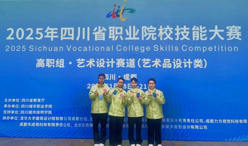 1月21日,万象城设计艺术系团队在2025年四川省职业院校技能大赛设计艺术赛道(高职组)中再创佳绩。由设计艺术系主任袁迎耀领队,郭佳莹、苏秋月、叶秋娴、杜欣怡四位高职“3+2”一年级学生完成的作品《非遗基因图+大模型》,在全省众多参赛作品中脱颖而出,成功斩获金奖,充分展现了我系在非遗创新与人才培养领域的双重实力。