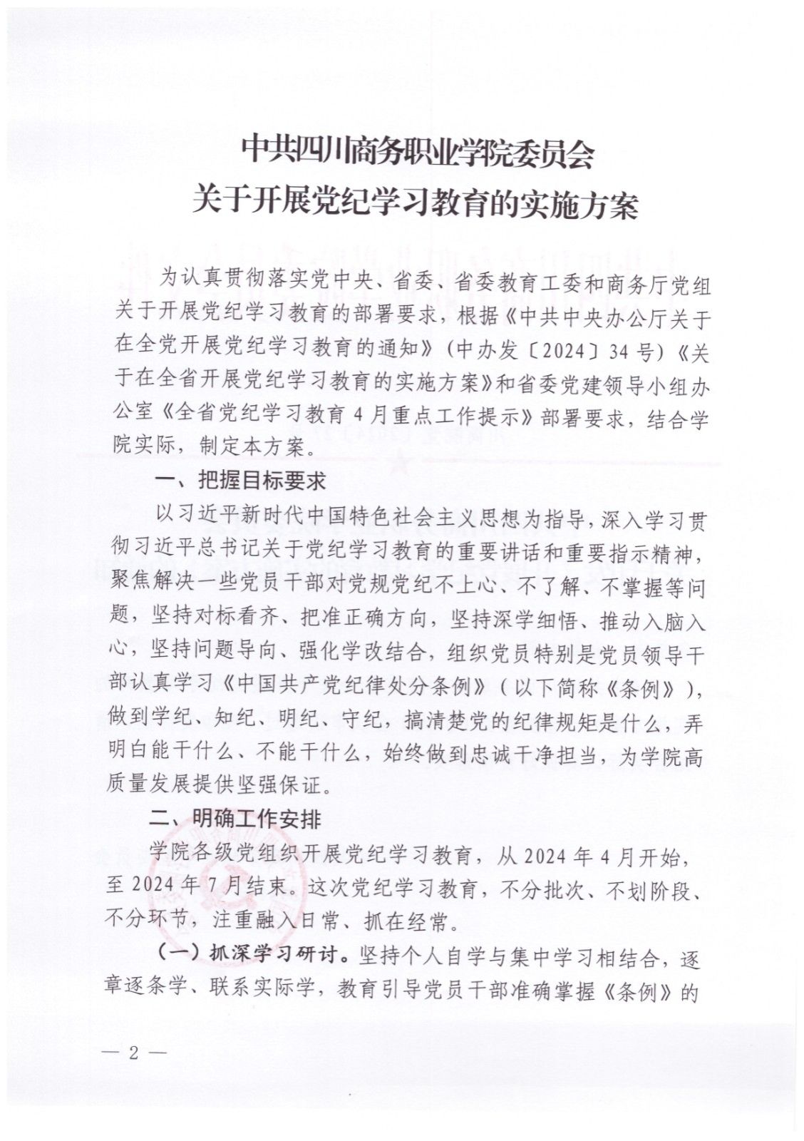 川商院党[2024]27号-关于印发《开展党纪学习教育的实施方案》的通知 (1).doc