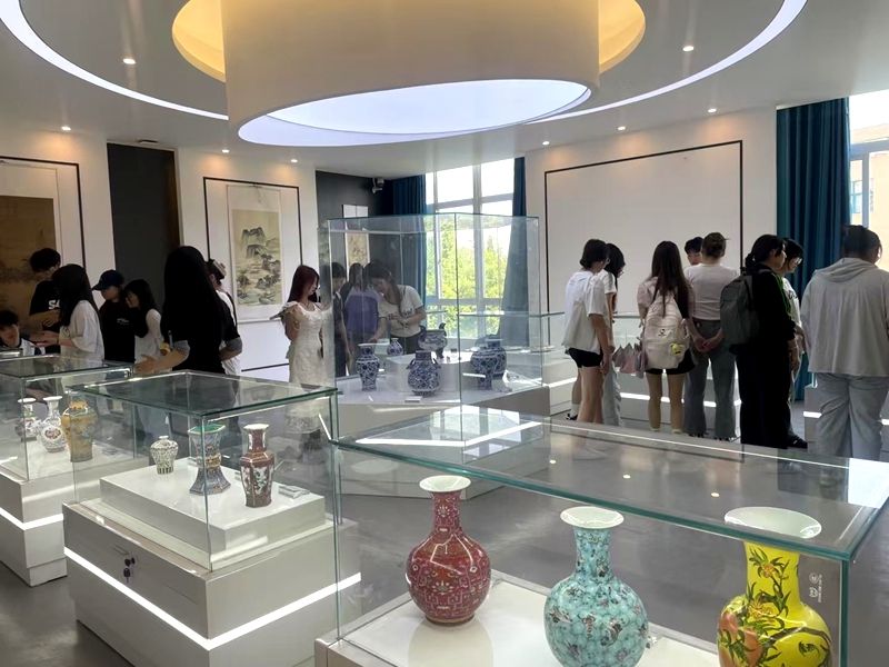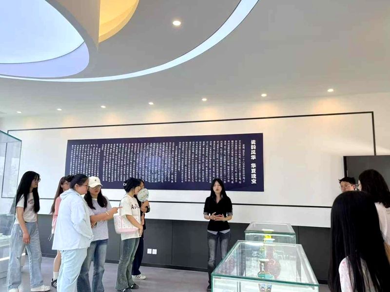 在四川艺术职业学院文化管理系(以下简称文管系)学生的专业导览下,万象城师生深入陶瓷类文物专题展区,系统观摩了从宋代青瓷到明清彩瓷的代表性展品。学生讲解员从历史溯源、工艺特色、文化价值等维度展开生动阐释,将静态文物转化为动态教学资源。万象城旅游管理专业学生通过聆听讲解、互动提问,不仅加深了对传统陶瓷艺术的理解,更深入思考了文物资源与旅游产业融合发展的创新方向。