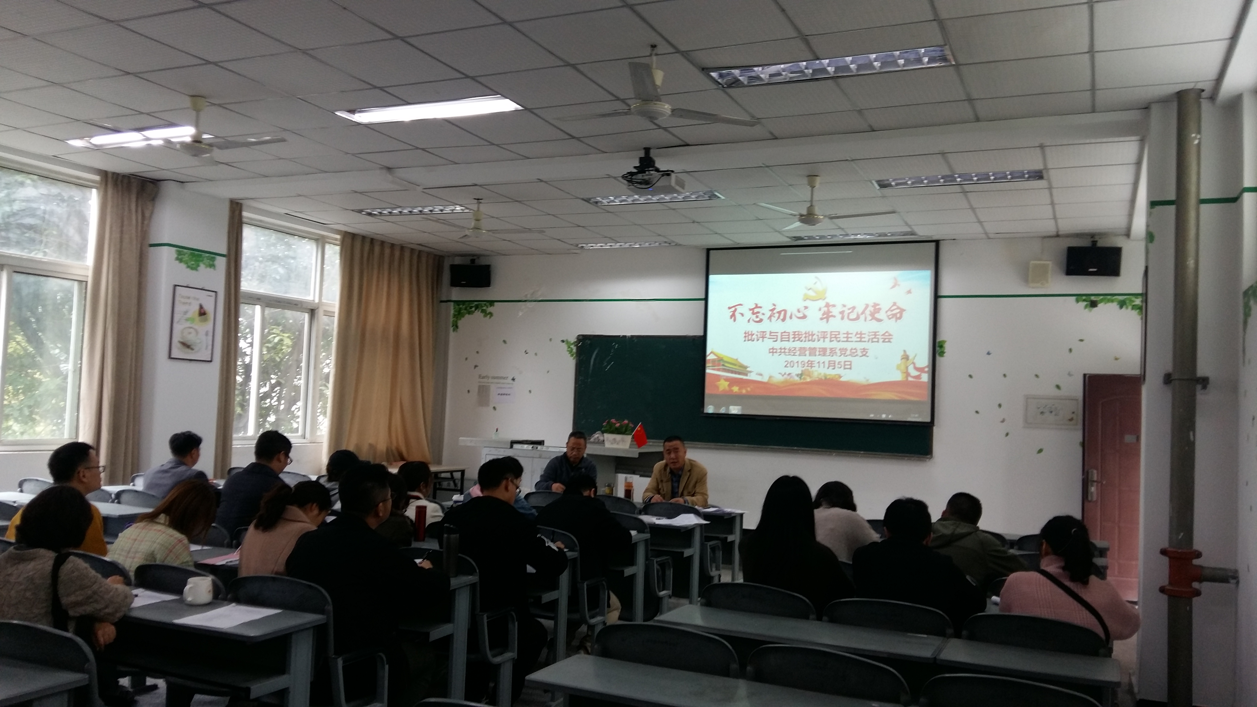 11月5日经营管理系全体党员在和盛校区1教202教室,召开了批评和自我批评为专题的组织生活会。会议由系总支书记郑海波同志主持。 会上,系总支书记郑海波同志对本次组织生活会的流程、目的和意义进行了讲解,要求全体...