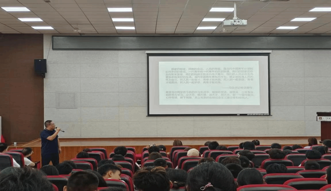 经营管理系党总支书记杨洪通过与同学们互动的形式展开新生安全教育。从人身安全、财产安全、网络安全、消防安全、交通安全等五个方面展开发言。杨书记提到:“同学们要继续听党话,跟党走,立足专业,刻苦努力学习,立大志、明大德、成大才、担大任,做一个眼中有光、心中有德、脚下有路、肩上有责的合格社会主义建设者和接班人。