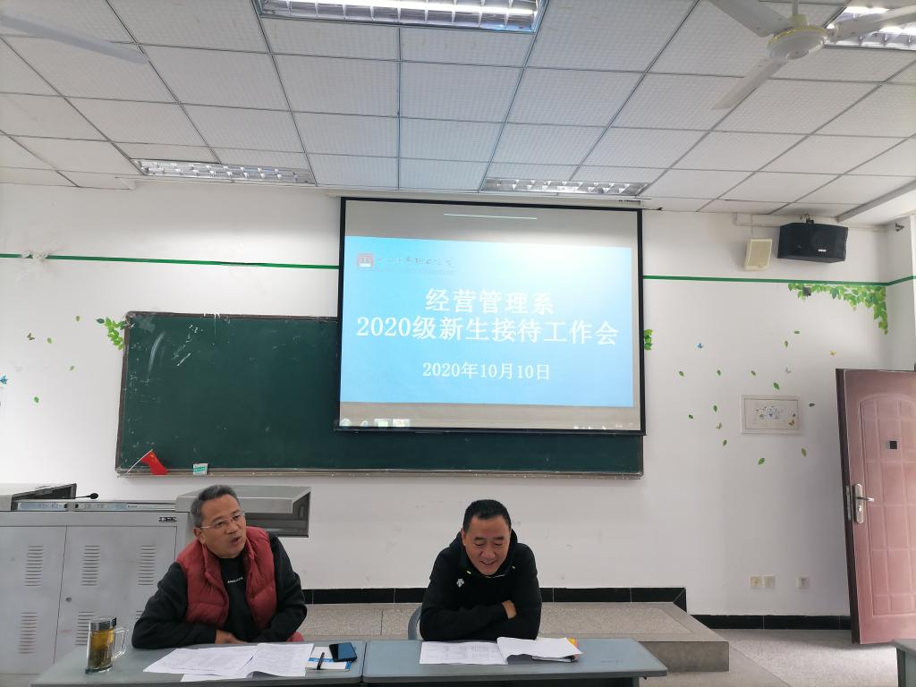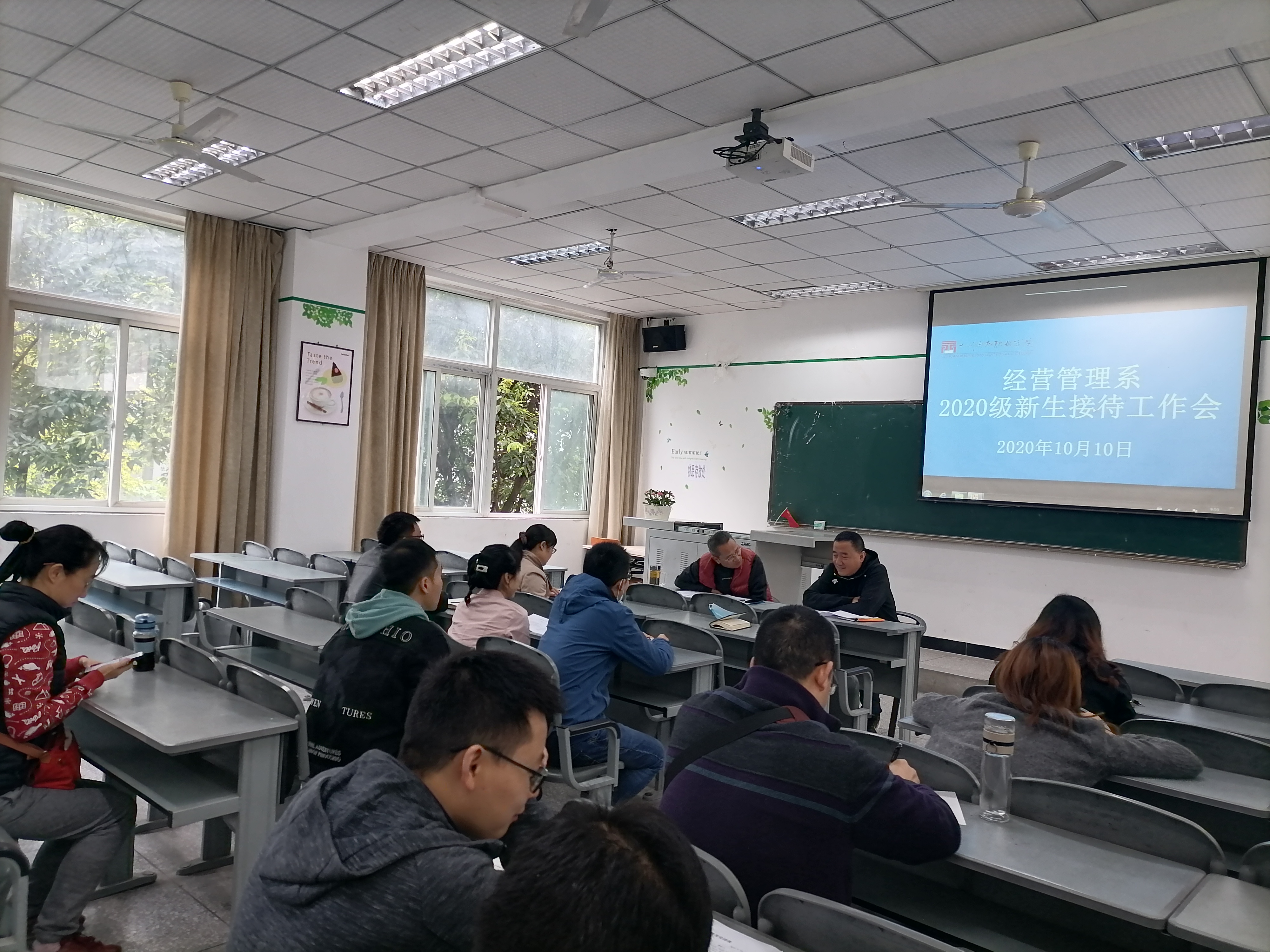 2020年10月10日上午10时,经管系于1楼202教室召开2020级新生接待工作会议。系主任梁栋、系党总支书记郑海波、系副主任王琦、全体行政人员、各专业负责人以及全体辅导员出席了本次会议。