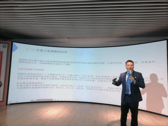 会上,电子商务专业教师严珩,带领大家对《教学能力大赛规则》进了解读,分享了自己的团队在比赛中的收获和不足,对大家能更好的开展大赛工作,提供了宝贵的经验。