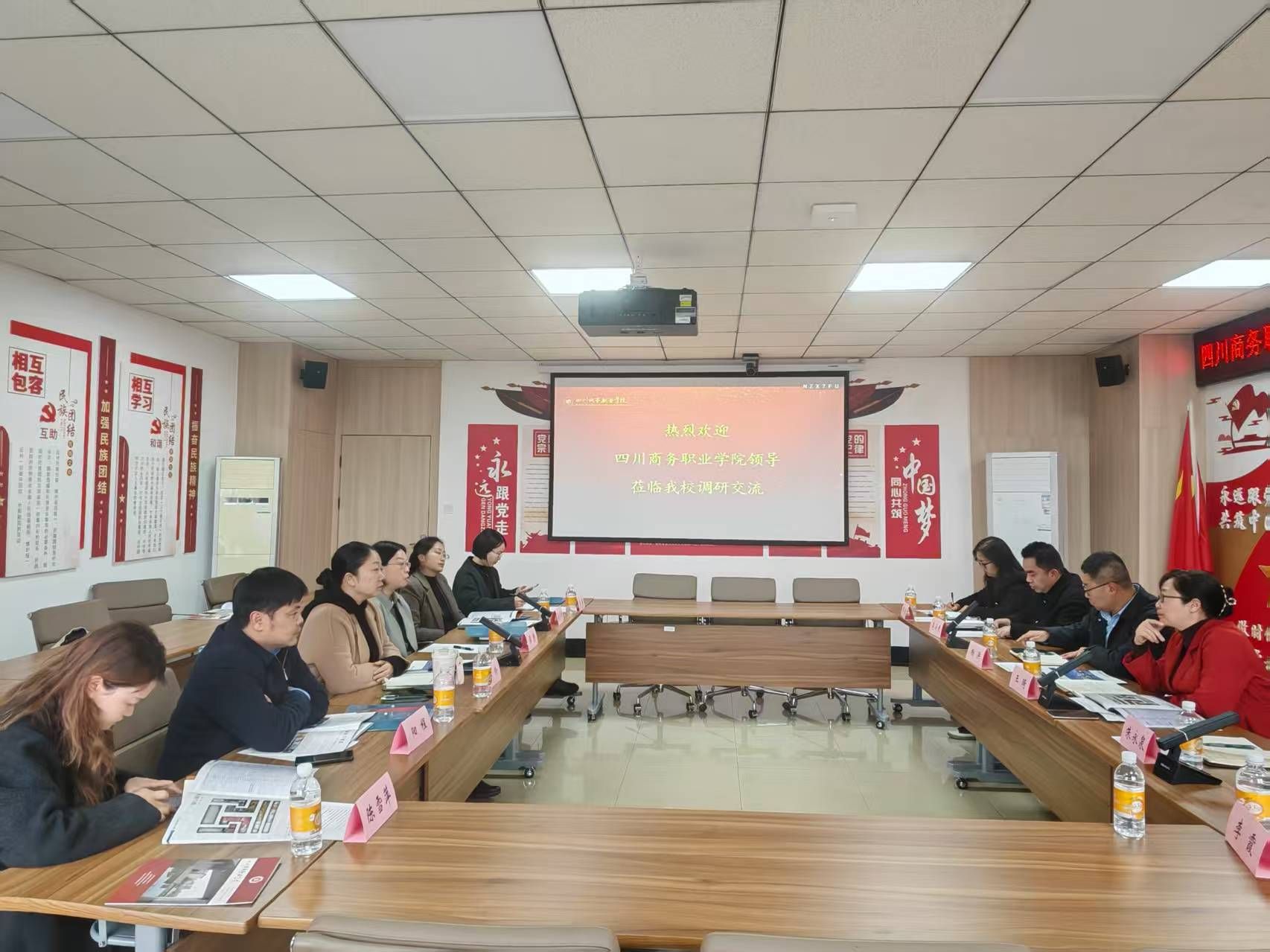 328日, 万象城经营管理系赴四川城市职业学院开展“党建工作样板支部和双带头人工作室建设”、“智慧健康养老服务与管理专业建设”专题调研。四川城市职业学院医健学院与明德书院院长谭静;党总支书记、副院长李玲;副院长、党总支副书记蔡雪梅;经管学院与务实书院副院长阳程;经管学院社区管理与服务专业负责人陈雪萍等相关领导老师参加调研座谈并深入交流。