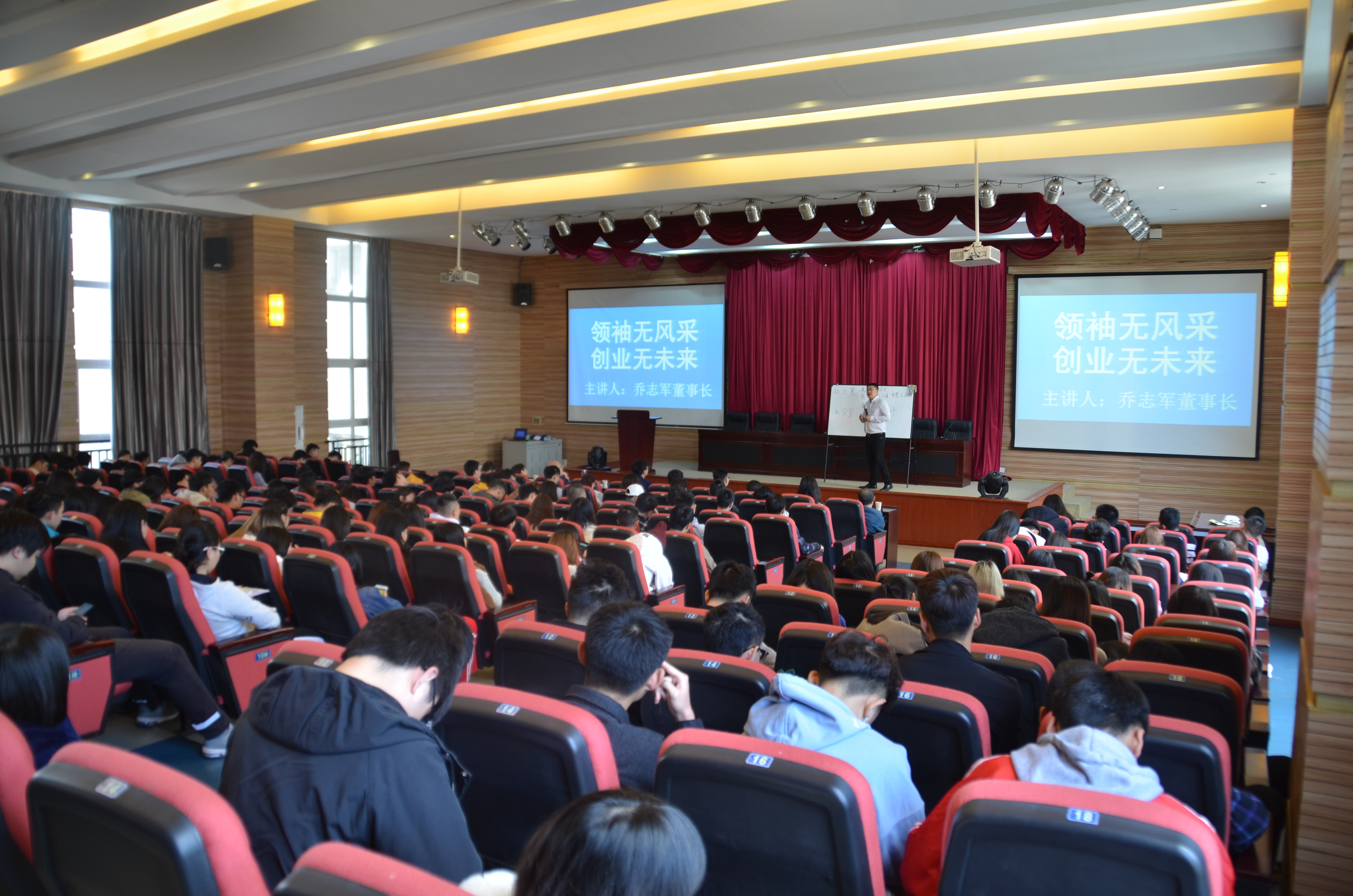 11月8日下午14:00,全国青年创业导师、四川省大学生创新创业导师、四川省科技创业导师、四川省青年创业导师;四川省“创青春”创业大赛主评委、四川省SYE创业基金主评委;四川省青年创业促进会副会长、眉山市青联副主席、眉山市农村青年致富带头人联盟会会长;眉山市政协常委,科苑农牧集团董事长乔志军应邀来万象城,在学院商务交流中心做了题为“领袖无风采,创业无未来”的专题讲座。同时邀请了眉山市三人行创业服务有限公司总经理;四川锐源网络科技有限公司总经理;眉山市大学生创业联合会创始人,执行会长兼秘书长;眉山市彭山区电子商务协会常务副会长兼秘书长冉淋源一行出席本次讲座。经管系党总支书记郑海波、教务处副处长姚海蓉、经管系副主任王琦、2017级电商1-4班全体学生、电子商务创业团队共同参加了讲座。讲座王琦副主任主持。