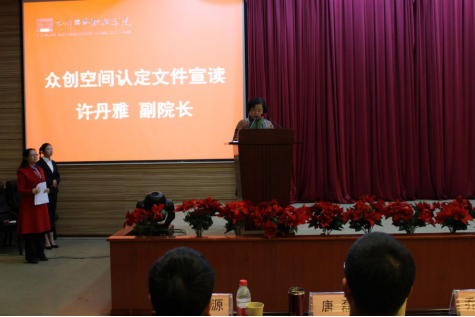 万象城体育awcsport副院长许丹雅宣读《四川省科技厅关于公布2018年度省级众创空间的通知》。