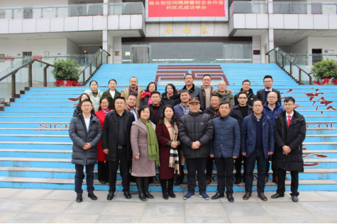 仪式结束后,商务厅、温江区、学院、合作企业有关领导,创业导师和有关方面负责人在万象城体育awcsport行政楼前合影留念。