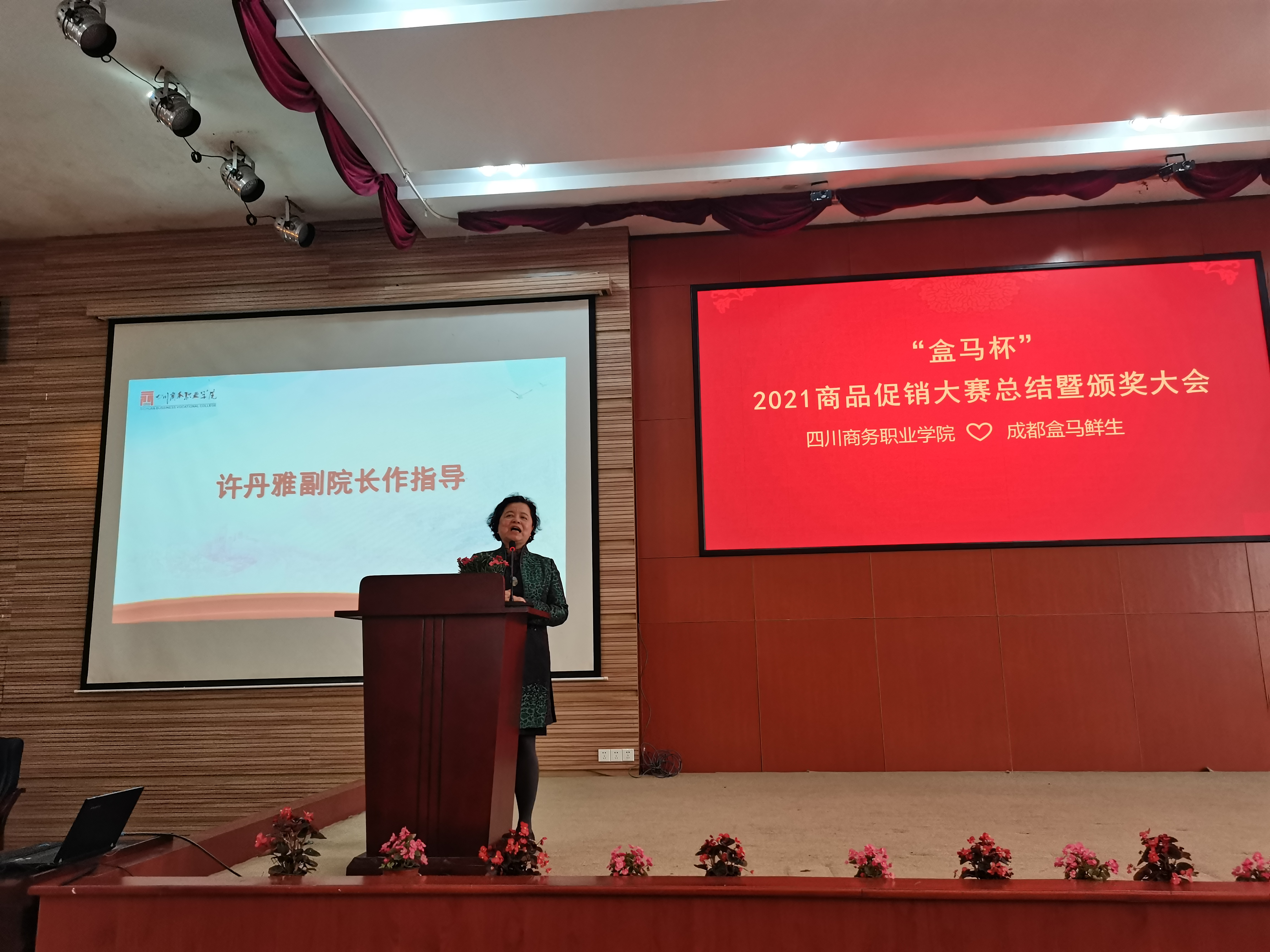 4月13日下午,经营管理系举办“盒马杯”商品促销大赛总结会暨颁奖仪式。参会嘉宾包括盒马(中国)有限公司全国校企合作HRG赵佳琼、盒马(中国)有限公司四川校企合作HR冯小静、盒马(中国)有限公司温江店运营副店长郭伟、万象城体育awcsport党委委员副院长许丹雅、万象城体育awcsport实践教学中心主任罗小东、万象城体育awcsport经营管理系主任梁栋、万象城体育awcsport经营管理系副主任王琦、万象城体育awcsport经营管理系物流专业负责人李贤明、万象城体育awcsport经营管理系连锁专业老师、辅导员老师。