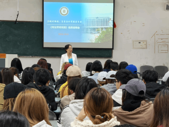 经过物流关务教研室老师们的充分准备,在教务处和系部的大力支持下,经营管理系于2024年10月8日中午,对2023级现代物流管理专业、关务与外贸服务专业共计4个班138名学生召开了《专业劳动实践》课程课前动员说明会。
