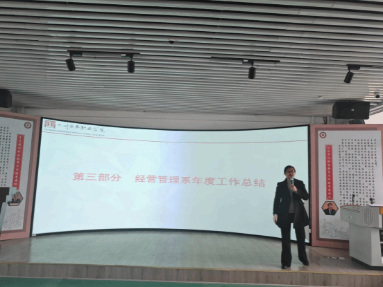 会上,王琦对本学期工作进行了全面总结,2024年度经营管理系继续加强专业建设,新设专业1个“供应链运营”正式招生;教师本人获各级各类奖项16项;指导学生参与各级各类大赛获奖23项;主编教材并正式出版2本、主编并待出版5本;教科研立项建设32项;开考1+X证书5个;取得省级以上重大成果9项。对大家团结协作,辛勤工作,认真负责的态度给予了充分的肯定。