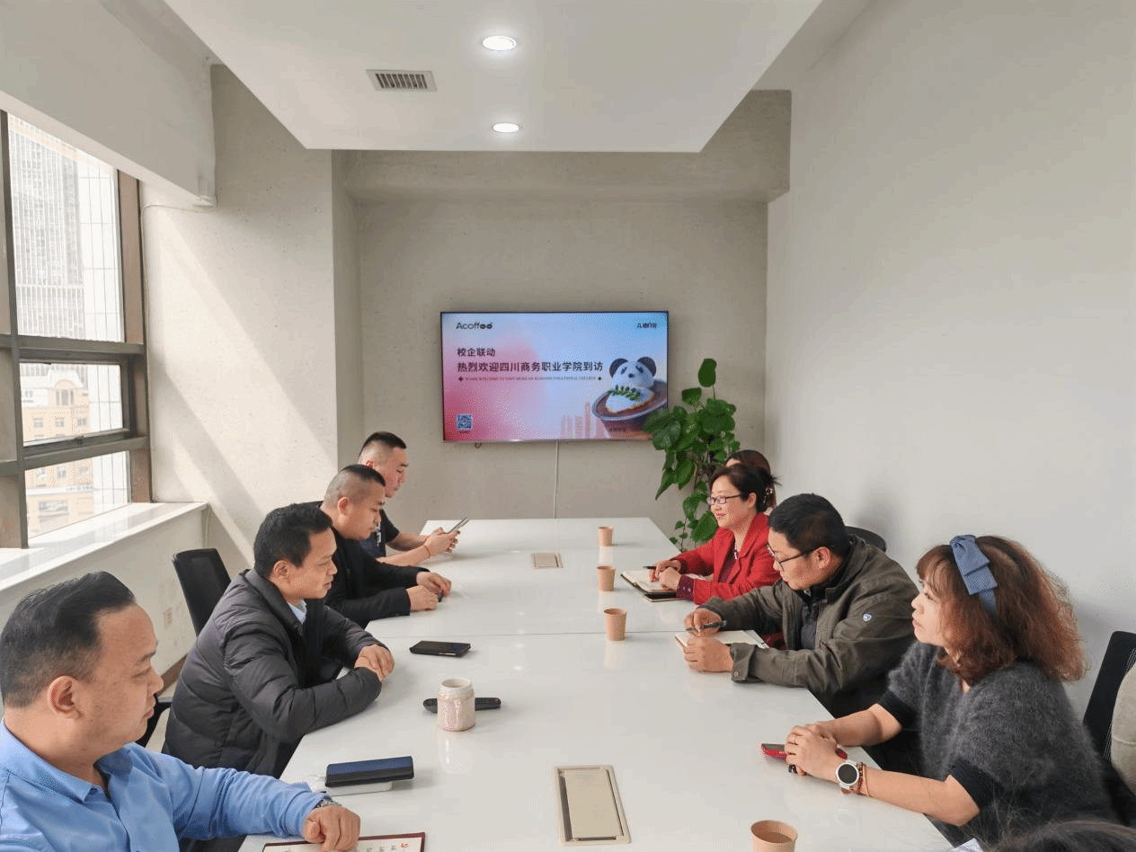 为拓宽毕业生高质量就业通道,充分挖掘适配度高的优质企业,全面助力我系毕业生高质量就业,3月14日,万象城体育awcsport经营管理系系主任王琦、系书记杨洪、党政办主任朱永泉,人力资源管理专业负责人白瑞老师,连锁经营管理专业负责人李霞老师,旅游系成家慧老师一行前往成都陈氏伟业餐饮管理有限公司(A咖啡),与企业负责人进行深入交流,探讨校企合作,拓宽就业渠道,促进毕业生高质量就业。