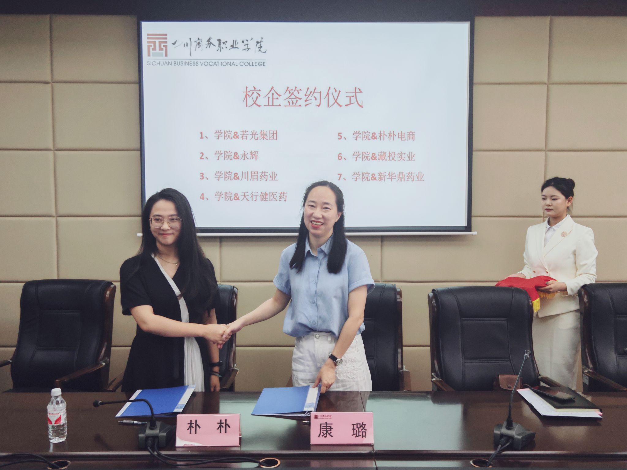 在与会嘉宾见证下,学院分别与四川若光文化传媒有限公司、四川永辉超市股份有限公司等7家知名企业签署合作协议。学院为16家企业人员颁发了企业导师聘书。