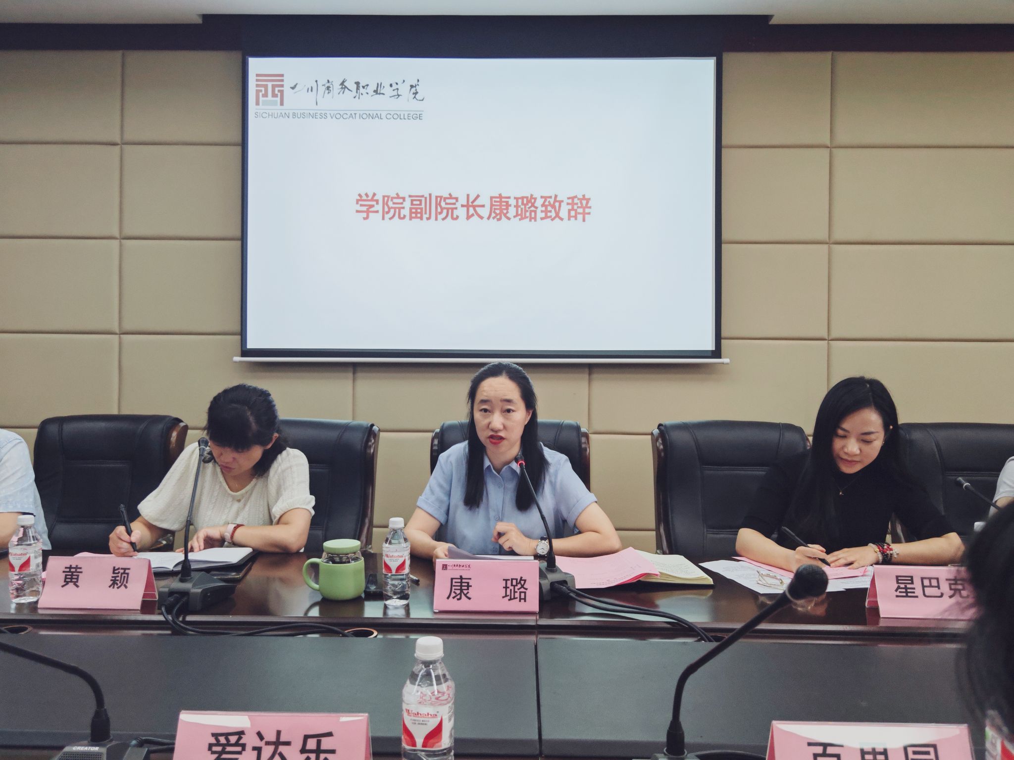 会议由经营管理系主任王琦主持。学院副院长康璐、人事处副处长赵蓉城、教务处副处长黄颖及经营管理系相关教师参加会议。