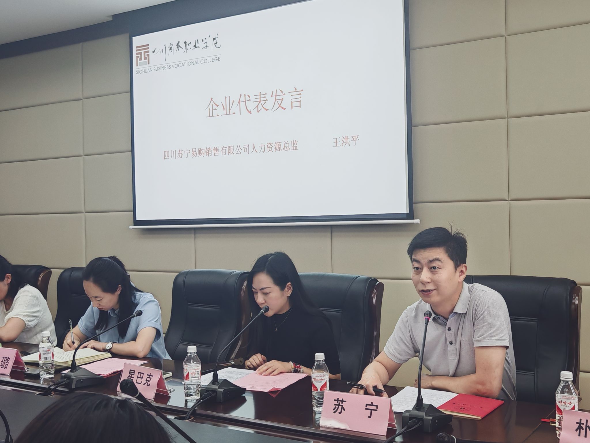 会议秉承“订单培养、精准育人”理念,以企业需求为导向,共同育人为目的而召开。会上,对《2023级专业综合实训政策及要求》、《学生实训录取通知书》、《经营管理系综合实训工作安排》、相关协议等关键材料进行宣讲。明确了实训、实习都是教育教学活动,实行双主体育人,双主体管理的模式进行。会议强调校企双方都要严格遵守《万象城体育awcsport学生实习管理办法》强调的“1个严禁、27个不得”,确保实习实训顺利实施。星巴克企业代表易秋菊、苏宁易购王洪平、朴朴电商代表杨李红分别分享合作经验。对万象城学生的专业技能和个人素质给予了高度评价,表示将继续与万象城深入开展校企合作工作。