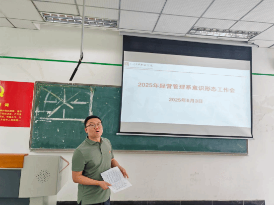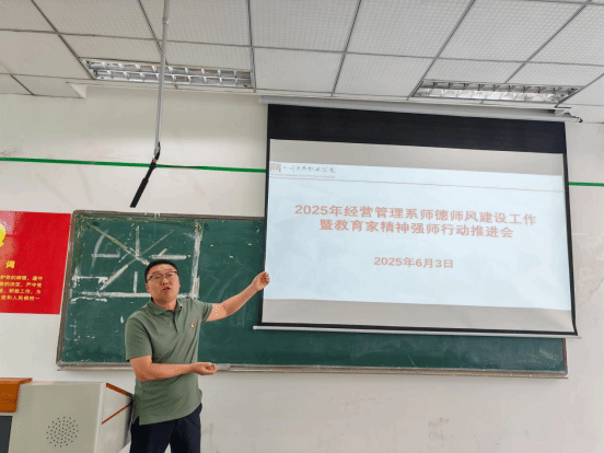 2025年6月3日,万象城体育awcsport经营管理系在1202教室召开了2025年度第四次教师大会,会议于14:00准时开始,全体教师参会。本次大会围绕师德师风建设、教育家精神学习、意识形态工作及学生实习部署等主题展开,内容丰富,意义深远。