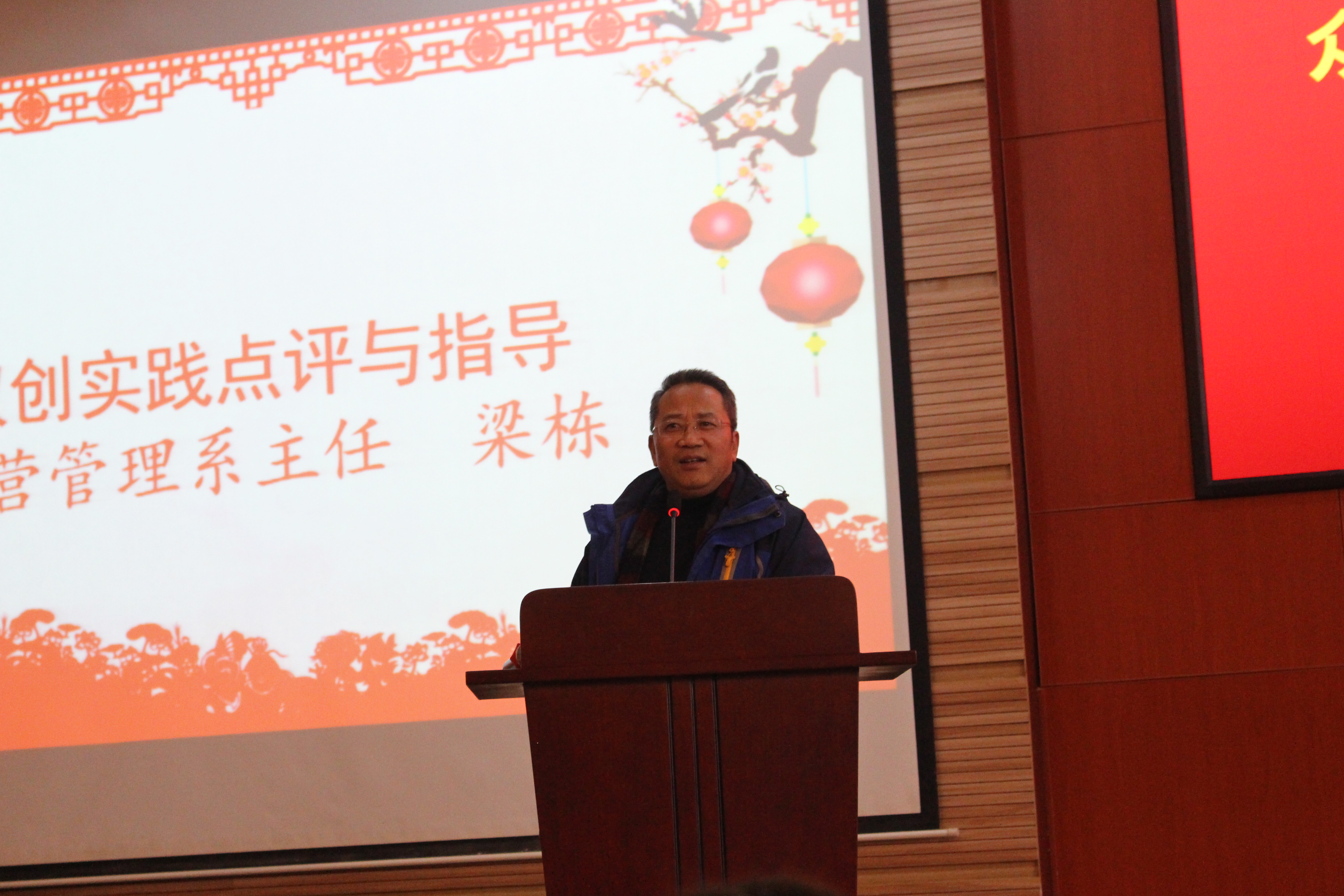 经营管理系主任梁栋对众创空间一年来的取得的成绩给予肯定,希望空间管理团队、导师团队和学生创客认真总结经验,脚踏实地,志存高远,把团队、项目做大、做强,在提升创客综合素质的同时,弘扬双创精神,服务区域发展,积极投身国家经济转型的“创新驱动战略”。