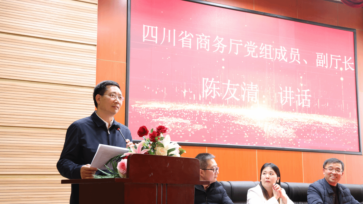 四川省商务厅党组成员副厅长陈友清代表省厅向三方成功携手合作表示热烈祝贺。他介绍了当前四川的外贸发展形势以及对具有数字化发展理念和技能的外贸创新人才的迫切需求,期待通过三方的合作,实现央省互动、区域联动、政行校企协同育人。希望三方紧紧围绕教育部关于职教改革十一条重点任务,牢牢把握“人才培养”这一核心,整合优质资源,依托合作共建的产业学院和职教集团平台,创新“专业+产业”有机融合的数字国际贸易人才培养机制,强化校企双向赋能,推动人才链、教育链、创新链、产业链“四链”深度融合,共谋培养方案,共建教学资源,共育双师队伍,共筑实践基地,共拓国际办学,共促产业学院与职教集团健康、高效地发展。形成推动产业学院发展和四川外贸创新发展职教集团建设的强大合力,产出一批标志性成果,打造外贸特色职教品牌,提升学院的办学实力和社会影响力。