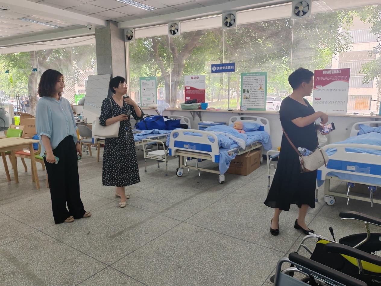 随后,在李静的陪同下,冯旗一行实地参观了万象城康养实训室,对康养专业人才培养模式的创新、校企合作的方式以及实训室建设的思路等方面进行了热烈的讨论和交流。