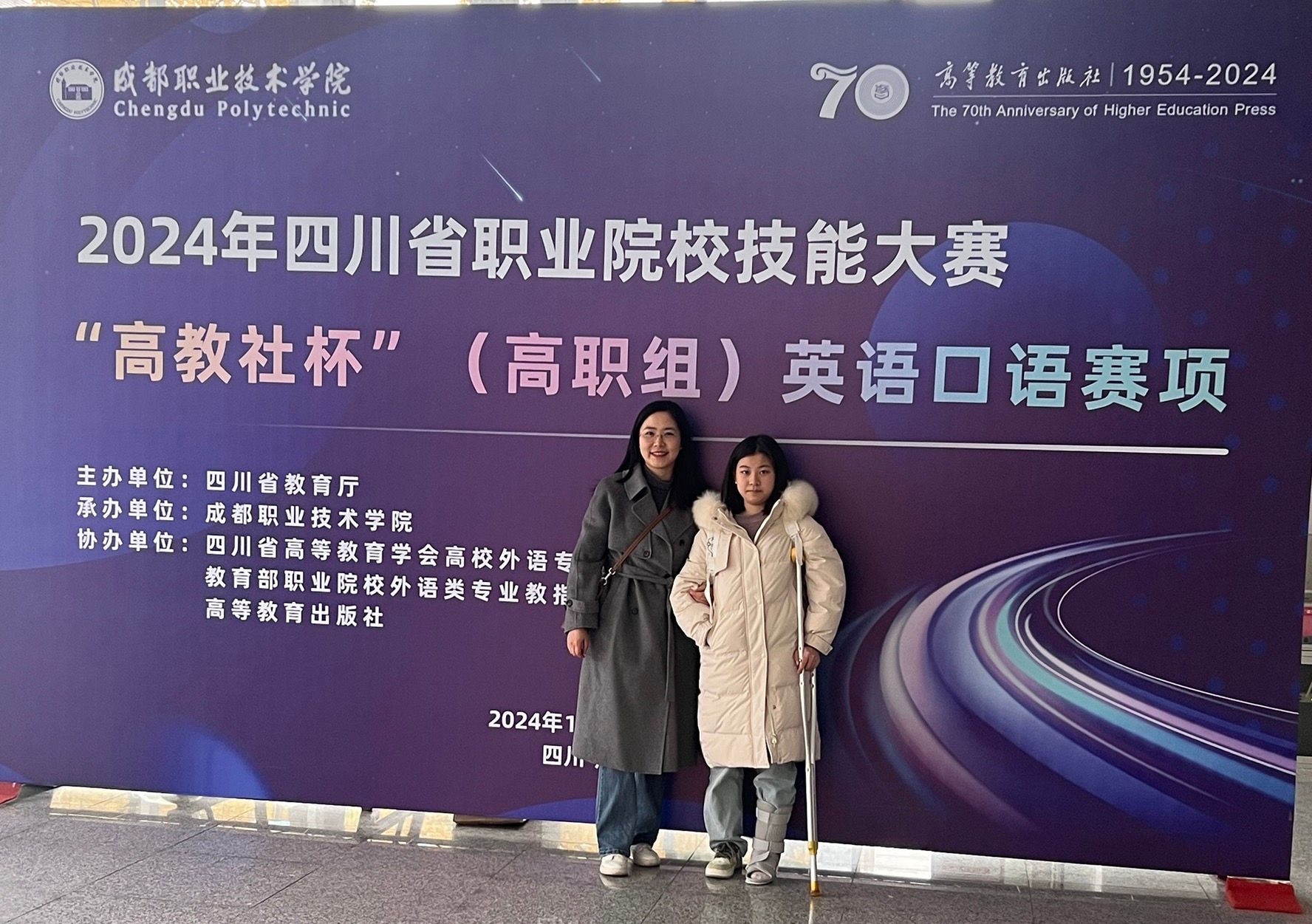 12月6日至8日,2024年“中银杯”四川省职业院校技能大赛(高职组)英语口语比赛在成都职业技术学院顺利举办,万象城学生敖珍珍在经济贸易系教师罗钦文指导下,凭借出色的表现,荣获非专业组三等奖,为学院赢得荣誉。