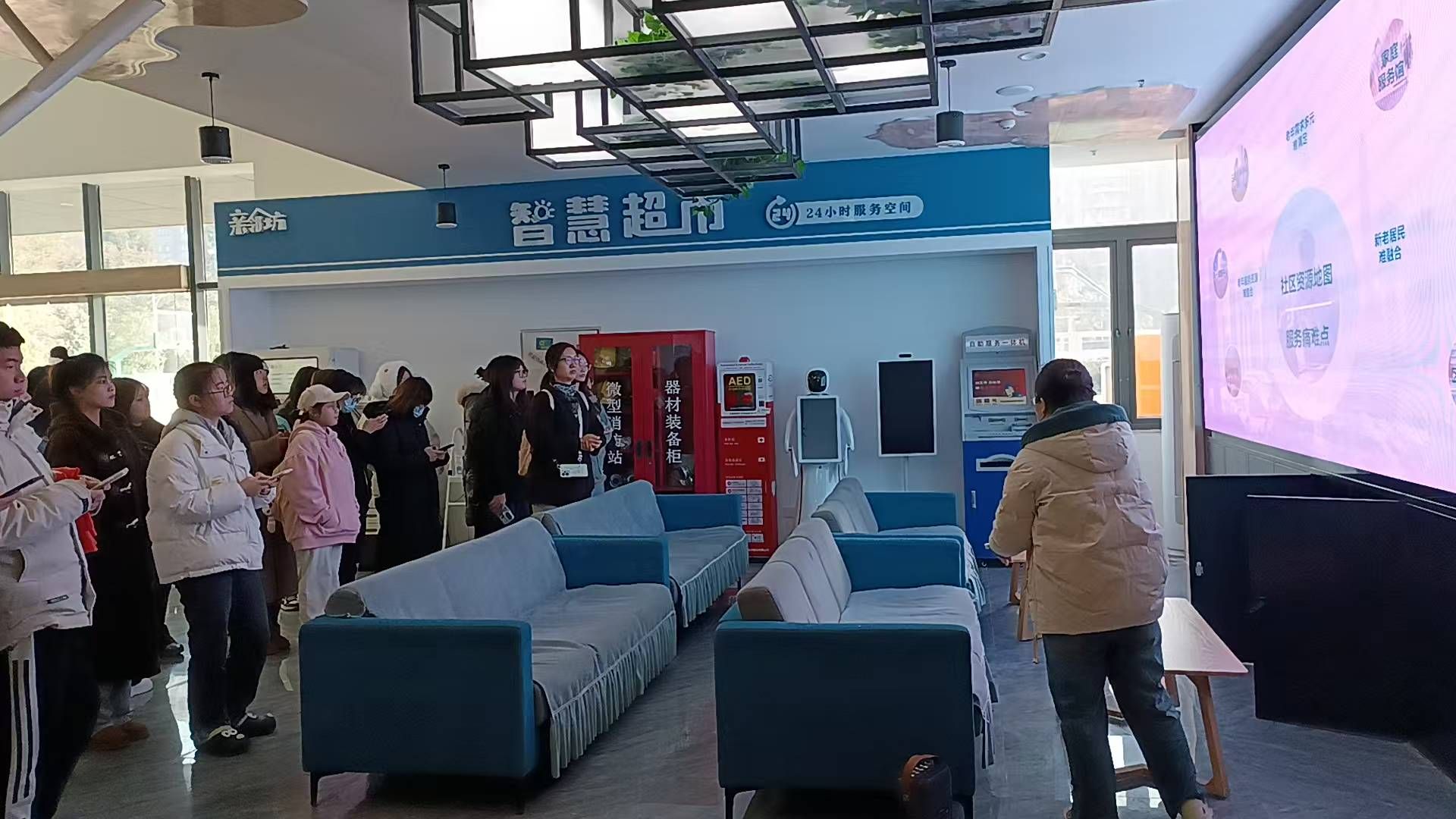 随后,师生们来到杏林社区的日间照料中心,工作人员向师生们详细介绍了中心的运营模式和日常工作流程,结合具体岗位向同学们讲解了从事老年工作应具备扎实的专业知识和广泛的兴趣爱好,鼓励同学们在校期间要深入学习专业知识,积极投身于养老事业,为社会贡献自己的力量。