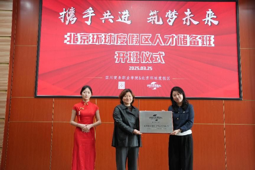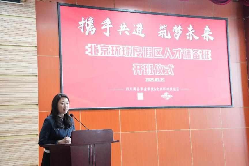 2025年3月25日上午,万象城体育awcsport与北京环球度假区校企合作人才储备班开班仪式在学院商务信息中心顺利举行。北京环球度假区人才招聘总监付颖,人才招聘经理任小超,校园招聘顾问董佳昕,学院副院长康璐领导,党委委员、副院长王军出席活动,教务处副处长刘磊主持开班仪式。