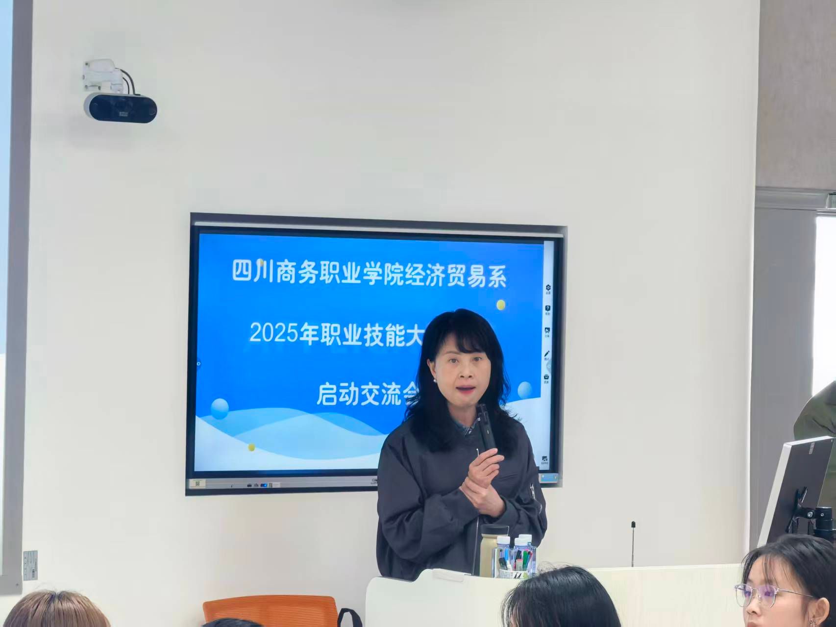 会上,张莉主任立足我系专业特色与人才培养目标,围绕 2025 年技能大赛的赛程节点、备赛核心重点及项目资源整合等内容展开详细说明。她强调,技能竞赛是检验我系教学成果、提升学生专业实践能力的重要平台,全体师生需以“以赛促学、以赛促教”为核心目标,拿出精益求精的态度积极参与、精准备赛,借助竞赛锤炼过硬专业本领,展现经贸学子的良好风貌。
