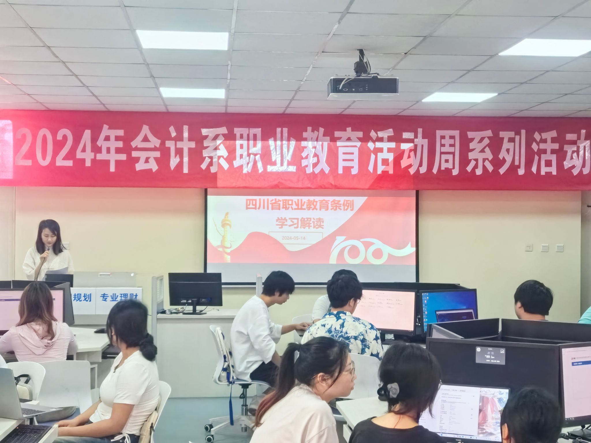 为贯彻落实《中华人民共和国职业教育法》和《四川省职业教育条例》,推进系部职业教育高质量发展,大力宣传劳模精神、劳动精神、工匠精神,弘扬劳动光荣、技能宝贵、创造伟大的时代风尚,进一步营造我系职业教育持续发展的良好氛围,会计系于5月14日下午14:30在金融实训室2302举行了职业教育活动周系列活动启动仪式及首场活动开赛仪式。本次活动旨在展示职业教育在教学领域取得的成果,并推动会计系职业教育的发展。参加今天启动仪式的有系部领导、各专业负责人、各项目负责人、全体辅导员老师以及部分专任教师代表。