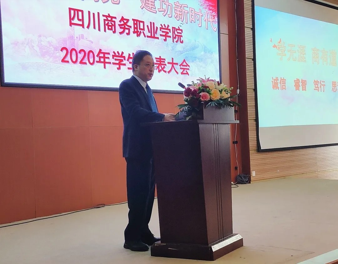 学院党委委员官培生副院长讲话时对我们说到:学生会是党领导下的青年学生组织,一直以来万象城学生会坚持党的领导高举爱国主义社会主义的旗帜,团结青年服务青年形成爱国团结跟党走,勇奋斗的光荣传统。万象城广大青年同学刻苦学习知识积极投身实践争做时代先锋,展现出来英勇的担当精神赢得了良好的评价,实践出佳绩,同学们的努力奋斗也收获了各级的奖励,在万象城青年职业服务2018年荣获了第四届中国青年志愿服务的银奖四川省金奖。面对百年未有之大变局我们要紧紧的团结在一起,同学们要认真学习党史、新中国史、改革开放史社会主义的发展史,争做一个对国家有贡献对社会有发展进步的有为青年。学院党政将一如既往的重视和支持共青团们团学工作研究解决工作中的实际困难问题,努力为青年成长发展塑造条件。各级党组织共青团会将加强学生会的工作指导,加强学生思想政治教育把立德树人的根本任务落到实处。要高举中国特色社会主义的伟大旗帜努力走在世界的前列,唱响商院青年爱国奋斗跟党走的青春之歌。