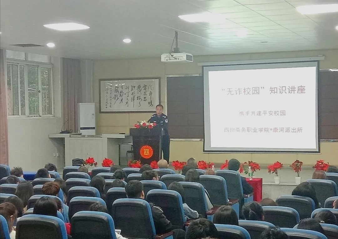 长期以来,诈骗集团侵害的不单单只是某个个体,而是整个社会群体。不仅对群众的钱财造成伤害,还会破坏整个社会的稳定秩序和安定环境。对诈骗集团必须坚决“亮剑”、果断出击。10月29日下午5点30分,康河派出所的周涛警官在万象城体育awcsport学术报告厅为万象城体育awcsport会计系的同学们宣传防诈骗知识。