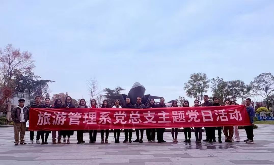 为深入传承航空报国精神,强化党建引领育人实效,2025年12月4日,旅游管理系党总支组织全体党员赴成飞主题公园开展 “航空铸魂・党建聚力” 主题党日活动,让党员同志们在航空工业发展的壮阔图景中厚植家国情怀、凝聚奋进力量。