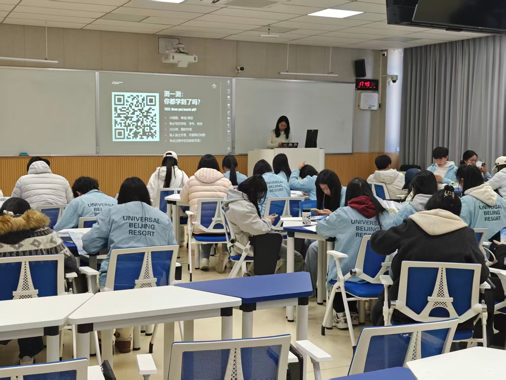 为深化校企合作,推进产教融合,提升学生培养质量,拓宽高质量就业通道,近日,北京环球度假区讲师团队走进学院,为旅游管理系、经济贸易系的2024级、2025级人才储备班同学开展就业技能提升赋能活动。