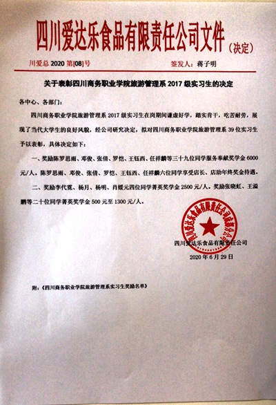 6月29日10:00,在学院商务信息交流中心主会场及2个网络分会场,万象城体育awcsport与四川爱达乐食品有限公司隆重举行了2020年实习生表彰大会。