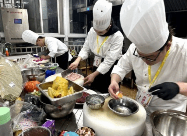本次大赛的组队模式和比赛赛程完全参照四川省职业技能大赛烹饪赛项的比赛标准开展。来自我系22级和23级烹饪工艺与营养专业的36位同学,组成4人一组共9支队伍参加了本次竞赛。