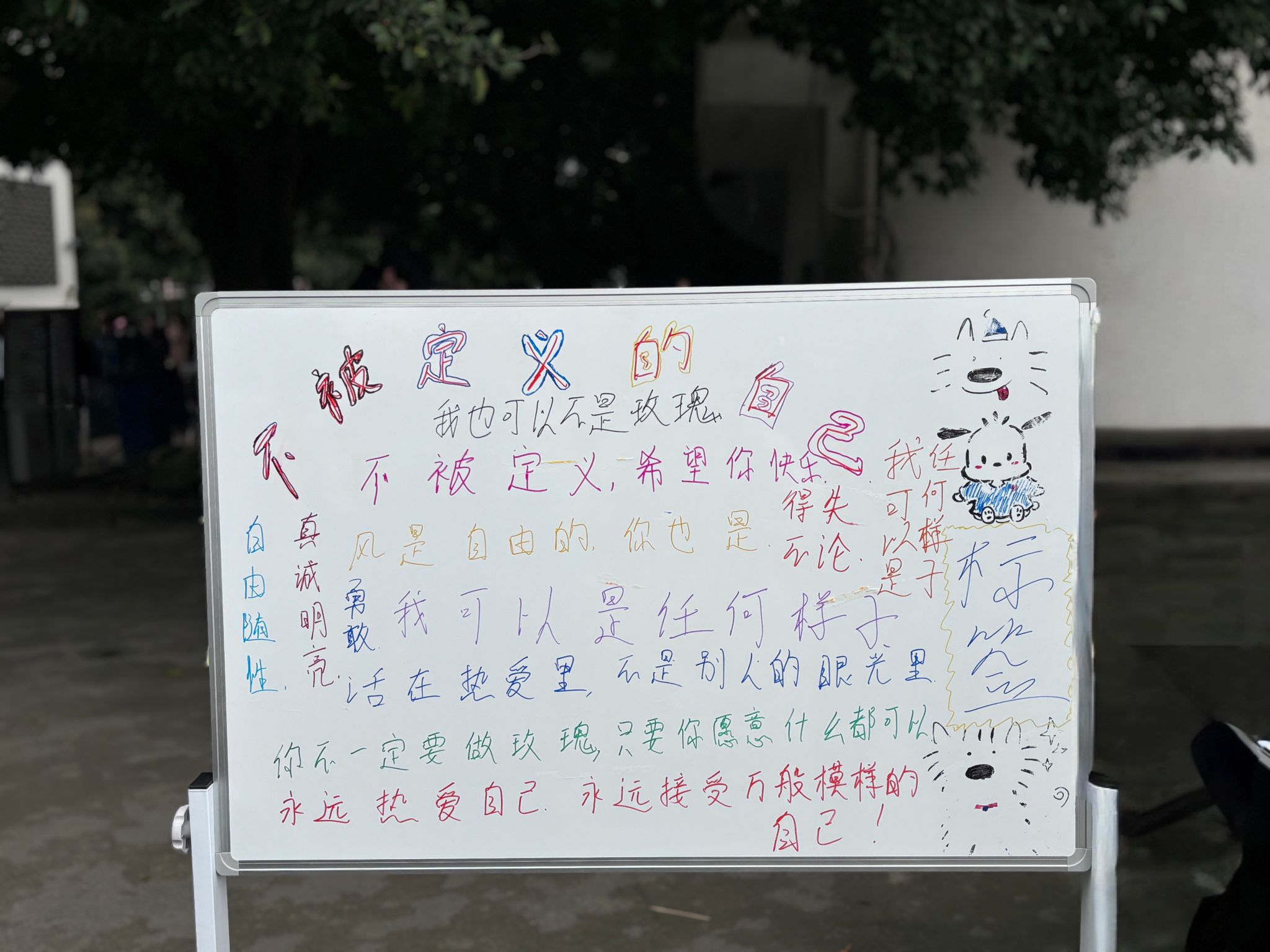 活动现场,大家纷纷拿起马克笔,亲手撕下那些束缚自我的刻板印象标签后写下对自己的寄语:“勇敢追梦,做最好的自己!”、“相信自己,无所不能!”……每一句话都充满了力量与希望。随后,大家将寄语贴在“不被定义的自己”展示板上,并领取了鲜花或棒棒糖,脸上洋溢着自信的笑容。