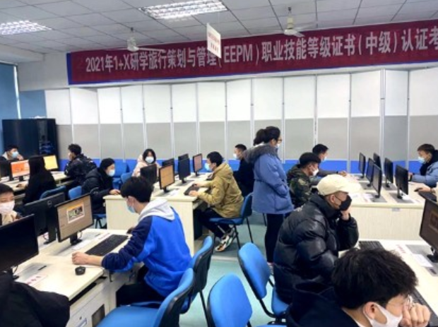 11月27日,万象城作为“1+X”证书研学旅行与策划(EEPM)职业技能等级(中级)考试四川省首批试点单位,组织旅游管理系19、20级128名学生,进行了基础理论上机考试和实操考核。